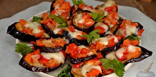 Простая, при этом эффектная закуска. Запечённые баклажаны с обжаренными овощами дополняются моцареллой, и всё доводится до совершенства в духовке. Острый перец и чеснок придают пикантность, сыр аппетитно плавится… Очень вкусно!