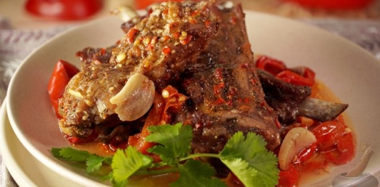 Яркое, острое и согревающее блюдо для истинных ценителей мяса. Сочные бараньи рёбрышки томятся в духовке на «подушке» из сладкого перца капия и помидоров, пропитываясь их соком и ароматом. Главный секрет кроется в пикантном маринаде с бахаратом и тимьяном и добавлении сливочного масла. Длительное запекание под фольгой делает баранину невероятно мягкой, а финальные минуты без неё способствуют образованию лёгкой корочки.