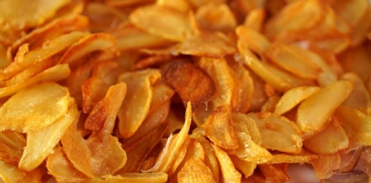 Чесночные чипсы можно подавать как приправу к основным блюдам.