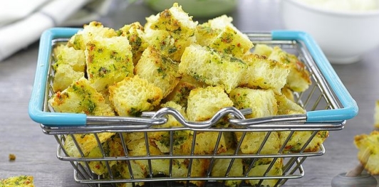 Запекайте 15-20 минут (зависит от особенностей духовки и размера сухариков). При необходимости в процессе запекания можно достать сухарики и перевернуть.