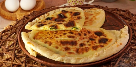 Продукты Для теста: Йогурт – 100 г Масло оливковое – 2 ст. ложки Вода (тёплая) – 100 мл Мука – 350 г + для подпыла теста Соль – 0,5 ч. ложки * Для начинки: Черемша – 200 г Сулугуни – 220 г Яйца – 2 шт. Перец чёрный молотый – по вкусу Соль (если сыр не солёный) – по вкусу * Для смазывания готовых лепешек: Масло сливочное – 50 г