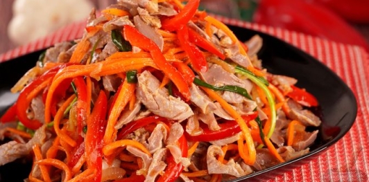 Продукты Куриные желудки — 500 г Перец болгарский — 100 г Лук репчатый — 100 г Морковь — 160 г Лук зелёный — 30 г Чеснок сушёный — 1 ст. ложка Соевый соус — 50 мл Уксус столовый 9% — 30 мл Масло растительное рафинированное — 50 мл Перец красный острый молотый — 1/2-1 ч. ложка (по вкусу) Кориандр молотый — 1 ч. ложка Перец черный молотый — 1/8 ч. ложки