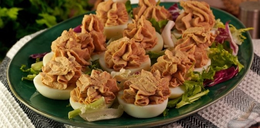 Яйца, фаршированные копчёной рыбой, до подачи отправить в холодильник, чтобы они хорошо охладились.