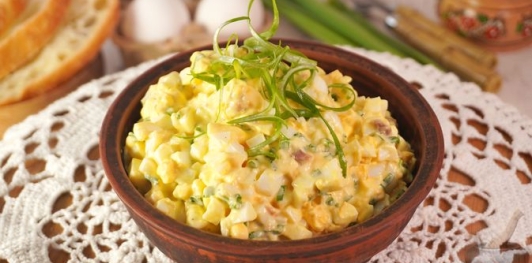 Простая и пикантная закуска из варёных яиц, зелёного лука и анчоусов. Анчоусы придают блюду насыщенный солоноватый вкус, который отлично дополняется нежностью яиц и свежестью зелёного лука. Заправка из майонеза и горчицы делает закуску сочной и выразительной.