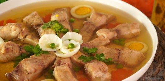 Заливной карп — классическое праздничное блюдо. Прозрачный ароматный бульон, нежные кусочки карпа и яркое оформление с овощами и яйцом делают его не только вкусным, но и эффектным украшением стола. Заливное получается лёгким, хорошо держит форму и радует вкусом.