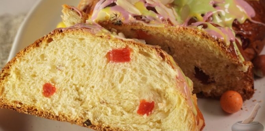 Ароматные сдобные куличи-косички станут главным украшением пасхального или рождественского стола! Нежное дрожжевое тесто, обогащенное сливочным маслом и яйцами, щедро наполнено ярким миксом из цукатов, сухофруктов и освежающей лимонной цедры. Изящная форма плетеной косы, глазурь из цветного шоколада и хрустящие миндальные лепестки не только удачно дополнят вкус пасхальной выпечки, но и создадут для неё эффектный наряд.