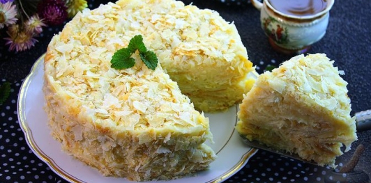 Этот ленивый торт «Наполеон» получается нежный и воздушный, а по вкусу очень похож на классический «Наполеон». Его основа — магазинное слоёное тесто, что значительно упрощает процесс приготовления. Внутри — нежный заварной крем из молока и масла, который придаёт торту сливочный аромат и сладость.