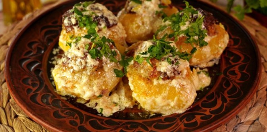 Сытное и эффектное блюдо, где картофельные лодочки наполняются сочной мясной начинкой и запекаются с добавлением сливочного соуса. Мягкий картофель, нежный фарш и ароматные специи создают гармоничный домашний вкус.