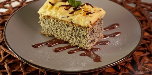 Простой и вкусный маковый торт c масляно-заварным кремом. Пышный и воздушный корж на маке и яичных белках покрыт нежным и в меру сладким масляно-заварным кремом. Шоколадный узор делает вкус более изысканным, а торт – ещё более аппетитным.