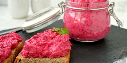 Знакомое и любимое многими сочетание солёной сельди и отварной свёклы. Бутербродная паста-намазка, в которой сочетаются солоноватая сельдь, сладковатая свёкла и нежный плавленый сыр, на кусочках белого или серого хлеба — отличная закуска.