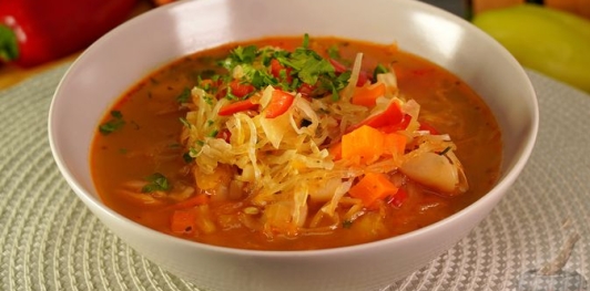 Овощной суп с квашеной капустой и фасолью готов.