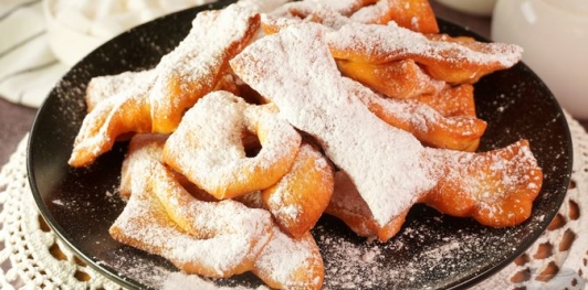 Продукты Кефир — 400 мл Сахар — 60 г Яйцо мелкое — 1 шт. Мука — 560 г + 50 г на подпыл Масло растительное — 40 мл Соль — 1/8 ч. ложки Сахарная пудра — 100 г Сахар ванильный — 10 г Разрыхлитель — 10 г Масло растительное рафинированное — 1 л