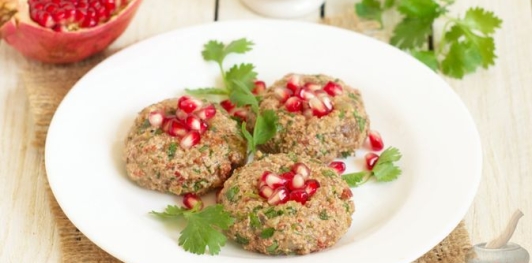 Продукты (на 3 порции) Перец сладкий — 380 г Орехи грецкие — 60 г Лук репчатый — 50 г Чеснок — 1 зубчик Кинза — 7 г Масло растительное — 1 ст. ложка Хмели-сунели — 1 ч. ложка Перец чили молотый — 0,25 ч. ложки Соль — 0,5 ч. ложки Перец чёрный молотый — 1 щепотка Гранат (зёрна) — 20 г