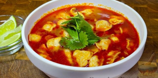 Пельмени в бульоне с пастой «Том Ям» – это восхитительное блюдо для тяжёлого утра после веселого вечера. Это блюдо именно для такого утра, когда желудок просит чего-то необычного. Пельмени «Том Ям» обладают насыщенным вкусом, сочетающим в себе пикантные, кислые, острые, солёные и пряные нотки. Одним словом, это то, что нужно для сложного утра.