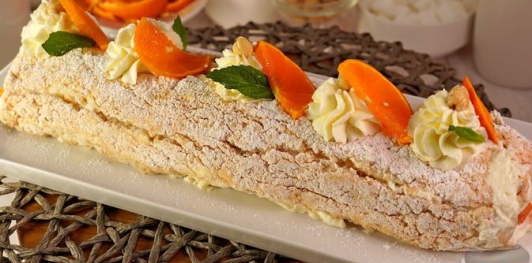 Рулет «Будапештский» – шведская десертная классика. В нём идеально сочетаются лёгкость безе с фундуком, нежность взбитых сливок и свежесть мандаринов. Хрустящая снаружи и мягкая внутри основа из фундука придаёт десерту выразительный вкус, а мандарины добавляют аромат и приятную кислинку. Несмотря на название, десерт был создан шведским кондитером Ингваром Стридом и давно стал классикой европейской выпечки.