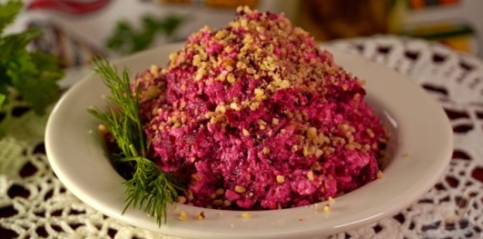 Салат из свёклы с творогом и орехами – лёгкое и сбалансированное блюдо с выразительным вкусом. Сладковатая свёкла гармонично сочетается с нежным творогом и хрустящими грецкими орехами, создавая интересную игру текстур. Чеснок добавляет аромат, делая салат выразительным, но при этом лёгким.