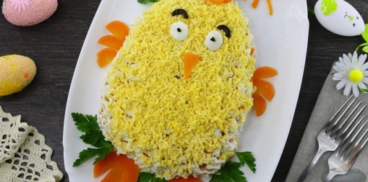 Салат «Пасхальный цыплёнок» — отличный способ добавить праздничного настроения без сложных техник и редких продуктов. В основе — нежное куриное филе, сладковатая морковь и мягкий обжаренный лук: сочетание простое, но гармоничное и любимое многими. А эффектное оформление в виде забавного цыплёнка превращает салат в настоящее украшение стола — особенно если за ним собирается семья с детьми.