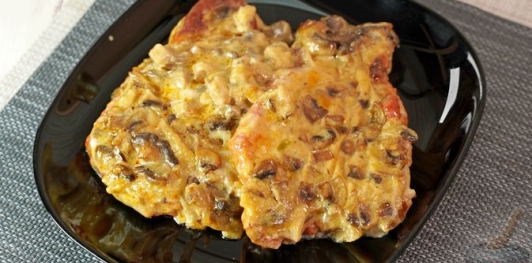 Отбивные из свиной корейки получаются очень нежными и сочными за счёт сливочно-грибного соуса. Мясо сначала отбивается, потом обжаривается и затем запекается в сливочном соусе с грибами.