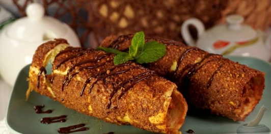 Обваливаем заготовки в смеси орехов, сахара и корицы.