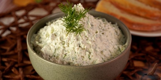 Продукты Творог — 300 г Сметана — 100 г Чеснок — 2 зубчика Укроп свежий — 20 г Майоран сушеный — 1 ч. ложка Соль — по вкусу Перец чёрный молотый — по вкусу