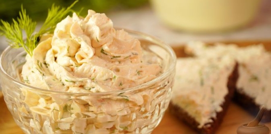 В творог добавляем сметанно-майонезную смесь. Перебиваем погружным блендером до кремовой консистенции.
