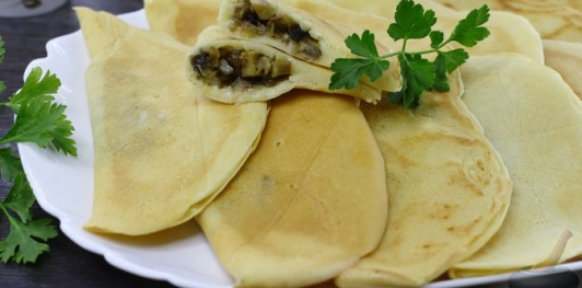 Особенность этих блинных пирожков — в уникальном тесте на основе кислого молока и творога — оно получается невероятно пористым и мягким, при этом не требует возни с дрожжами. Выступающий в роли начинки классический дуэт обжаренных грибов с луком порадует своим неизменно потрясающим насыщенным вкусом, сочностью и ароматом.