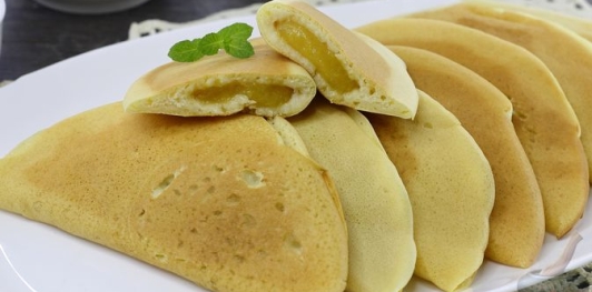 Пышные пирожки-блинчики с консервированными фруктами – идеальный способ разнообразить завтраки. Нежность творожного теста прекрасно аранжирует сочную фруктовую начинку. Необыкновенная его пышность — заслуга творога и кислого молока в составе – такая основа мягко обволакивает фрукты. Добавление крахмала в начинку гарантирует, что весь её сок не окажется на сковороде, а останется внутри.