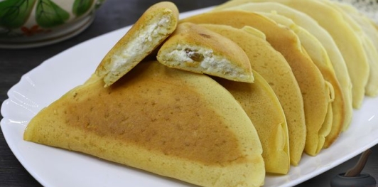 Творожные блины-пирожки — это удачное сочетание нежных блинчиков и сочной сладкой начинки. Творог добавляется и в тесто, и внутрь, благодаря чему блины получаются особенно мягкими и тающими во рту. Пористое тесто на кислом молоке отлично сочетается с кремовой творожной начинкой с изюмом.