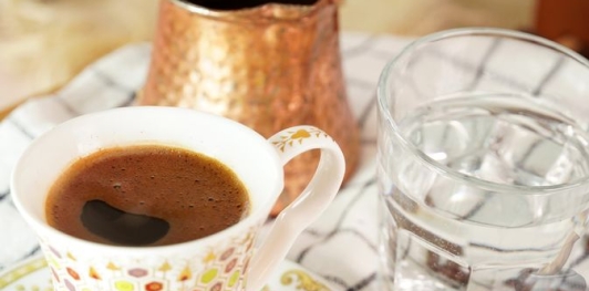 Разливаем кофе по чашкам, стараясь сохранить пену. Традиционно подают со стаканом холодной минеральной воды и по желанию дополняют восточными сладостями.