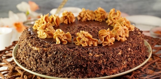 Оставшейся крошкой посыпать середину торта. По краю отсадить оставшийся крем с помощью насадки «звёздочка».