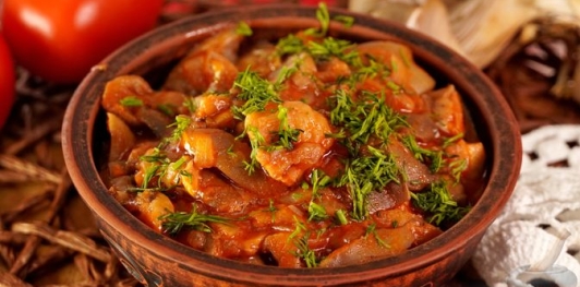 Продукты Вешенки — 800 г Лук репчатый — 200 г Масло растительное — 2 ст. ложки Паприка — 1 ст. ложка Тмин молотый — 1 ч. ложка Томатная паста — 100 г Мука — 1 ст. ложка Соль — по вкусу Перец чёрный молотый — по вкусу Укроп свежий — 15 г