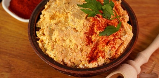 Закуску из брынзы и творога с тунцом и пряностями (кёрёзёт) хранить в холодильнике.